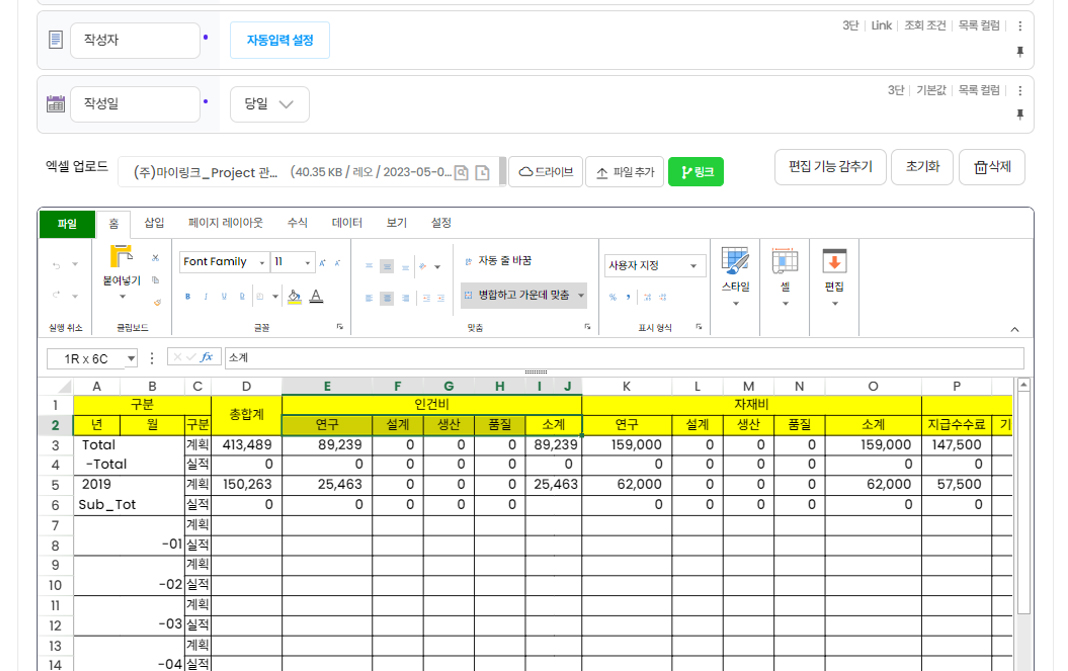 - 기존 사용하던 Excel, Word 양식과 동일한 형태로 웹 화면에서 프로그램을 직접 생성 가능