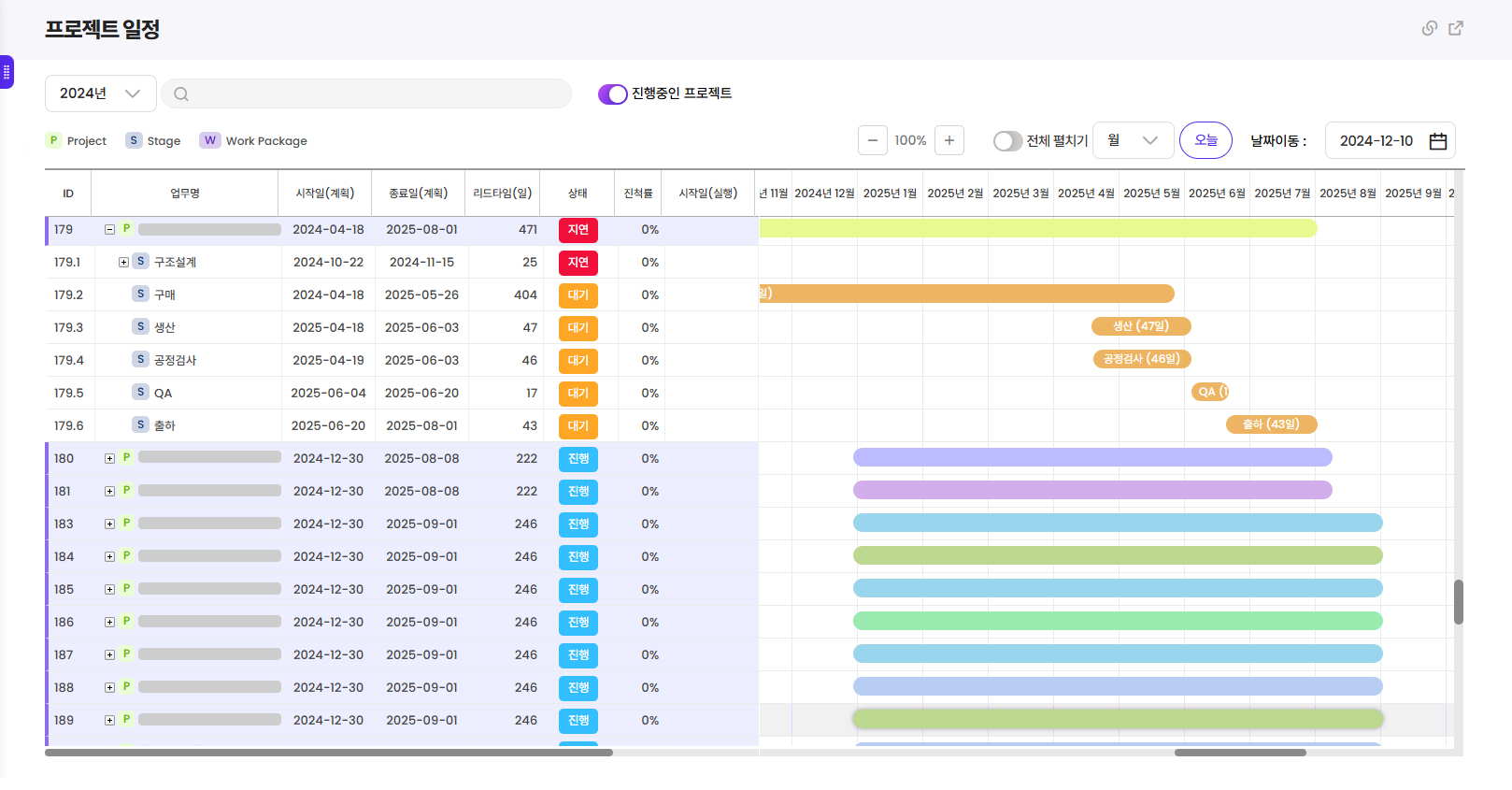 수주와 연결된 프로젝트는 자동으로 WBS(일정) 및 역할이 지정되며, 개별 Sub-Project 등록도 가능합니다.