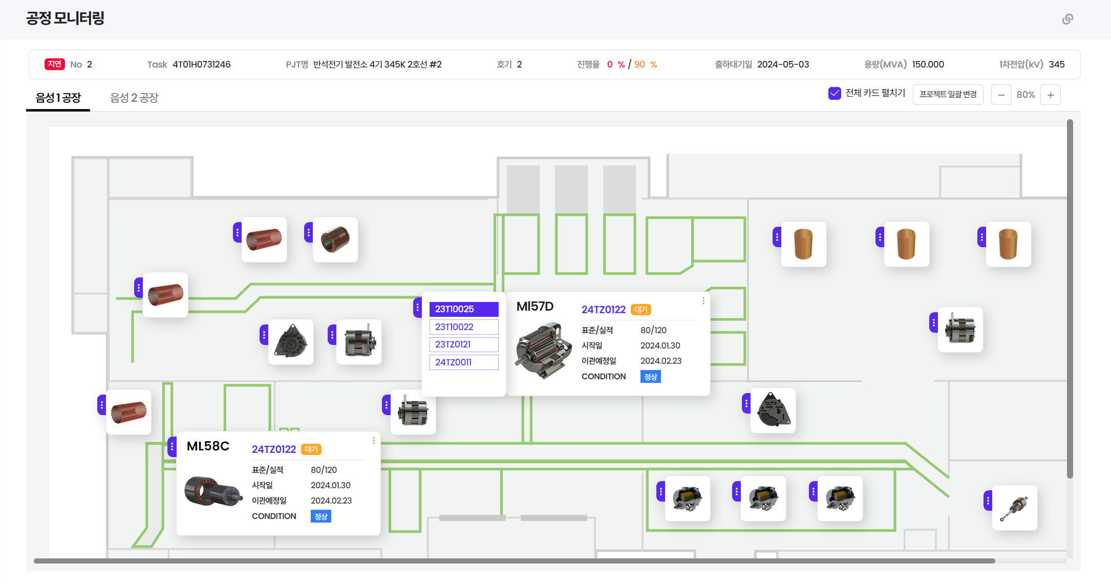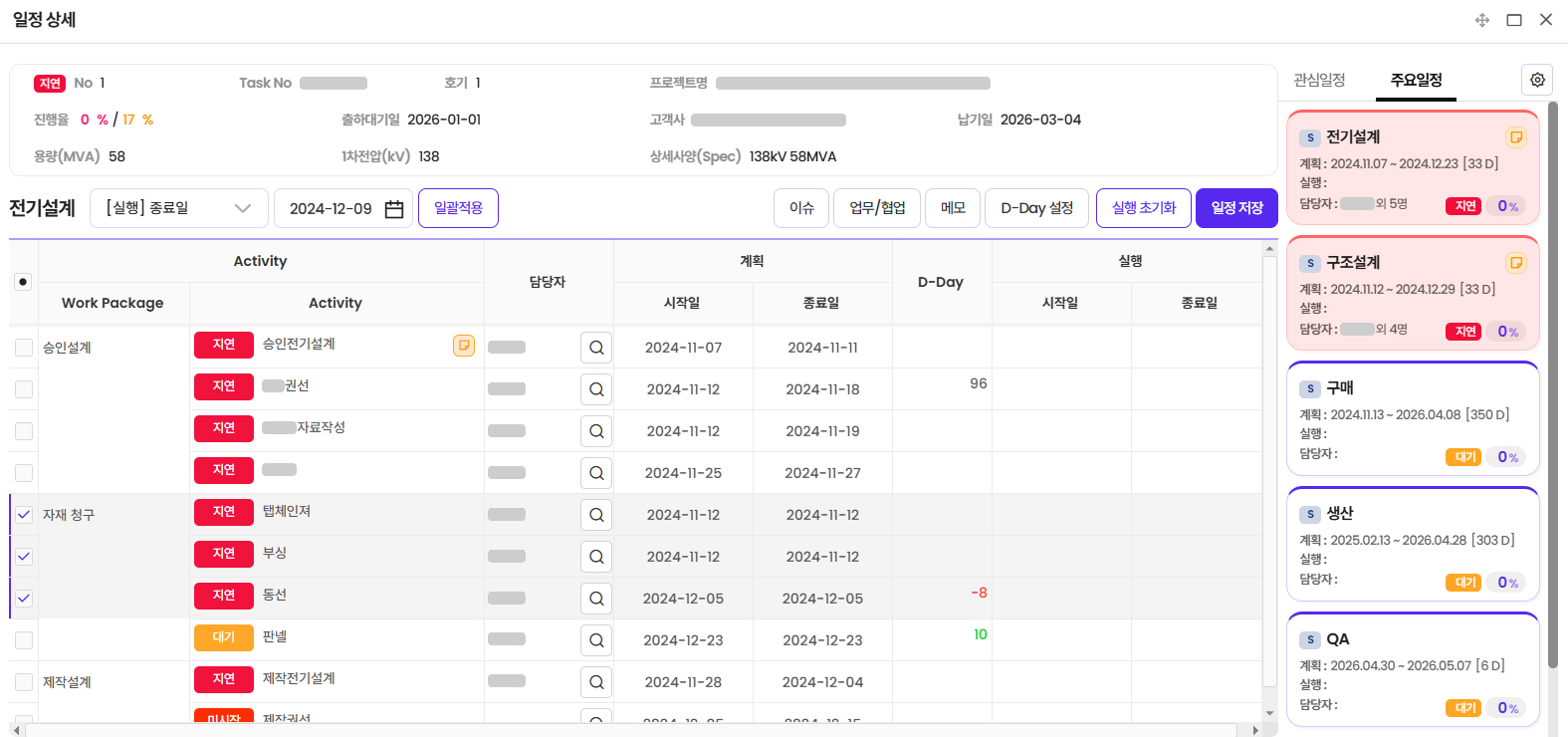 - 프로젝트 일정과 연계하여 자재 구매, 생산, 품질 관리 등의 업무 진행