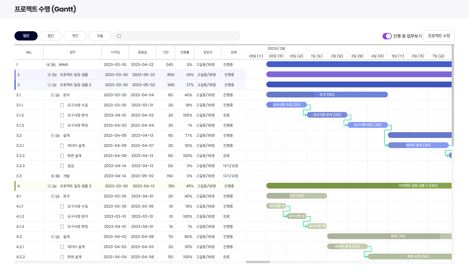 프로젝트 및 Sub-Project 관리