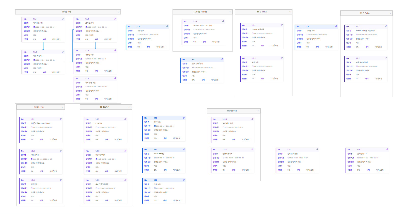 - 제품 개발 프로세스 단계별 이벤트 진행 상황을 시각적으로 확인 가능