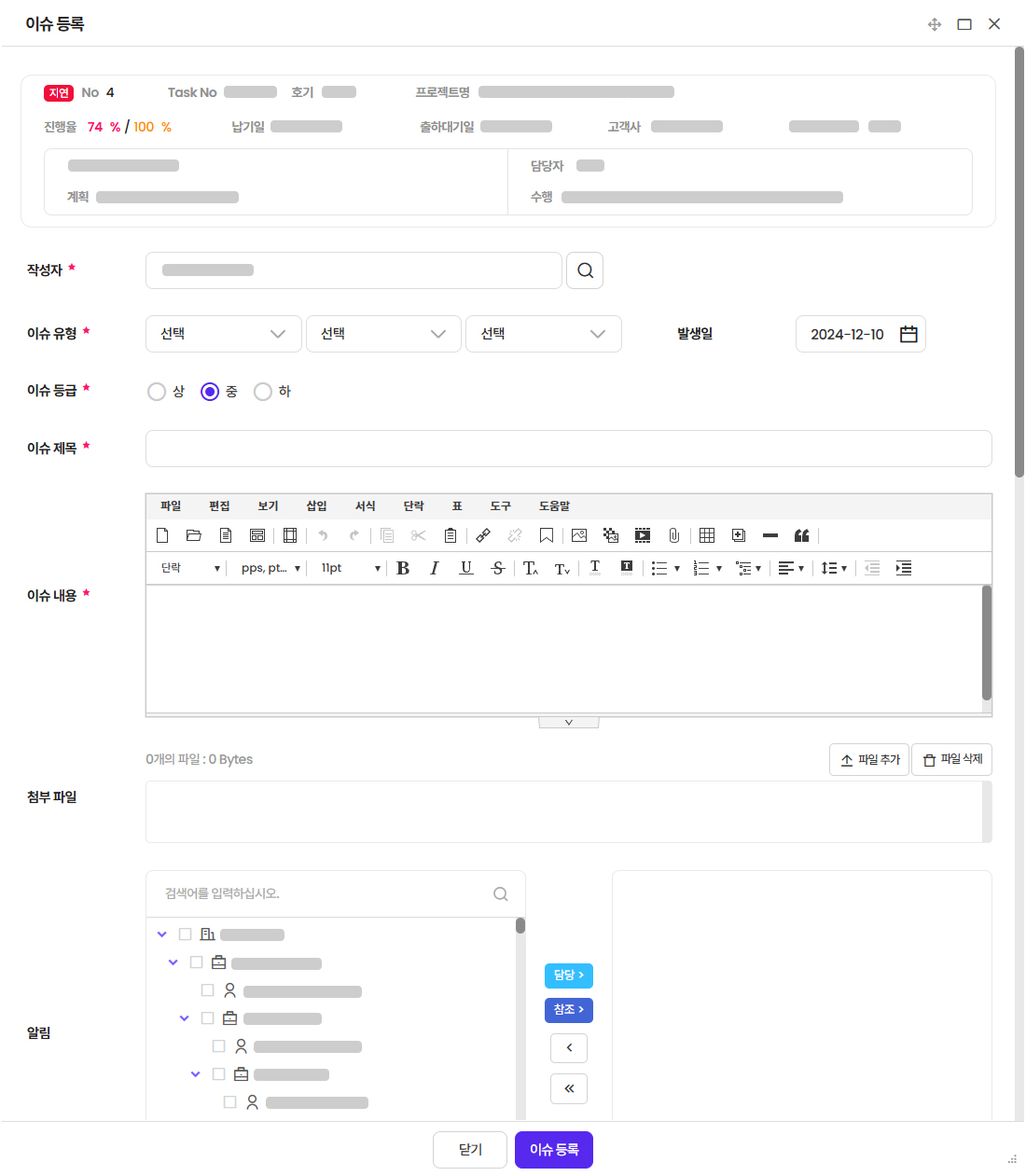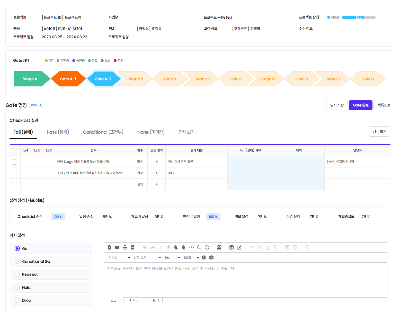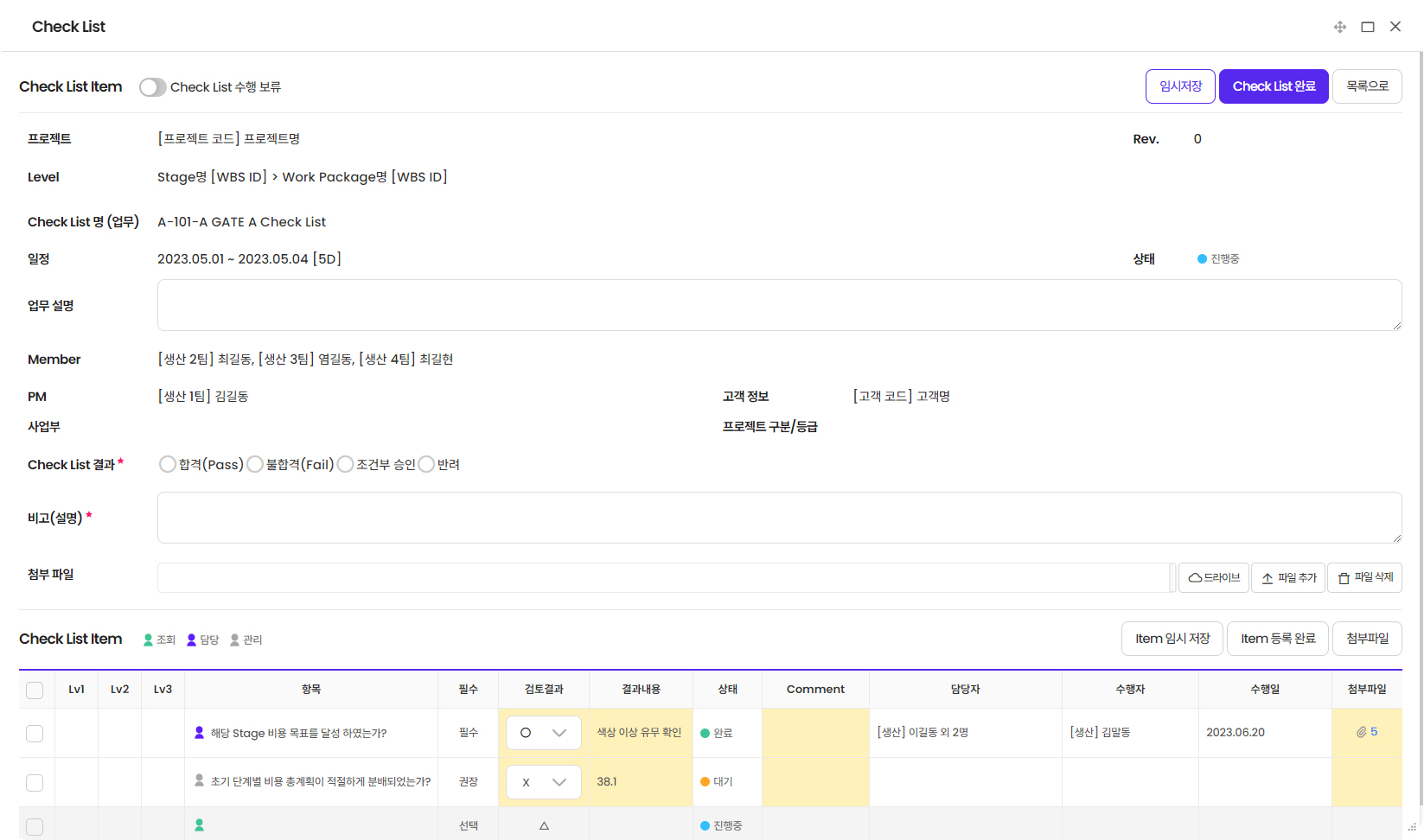 - 프로젝트 단계에 따른 결재 및 참조(배포) 라인 관리