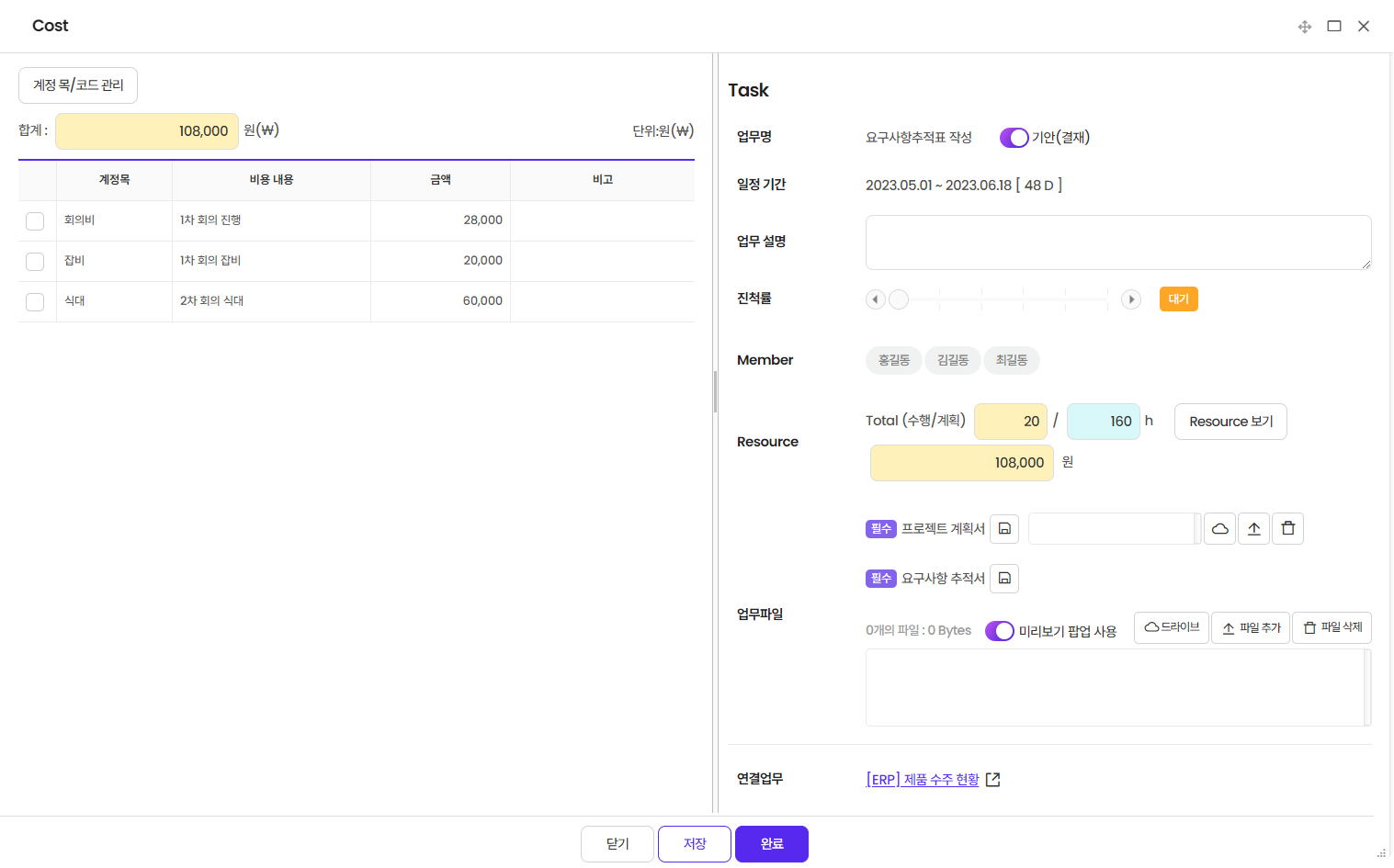 프로젝트 Cost (예산 및 실비용 관리)