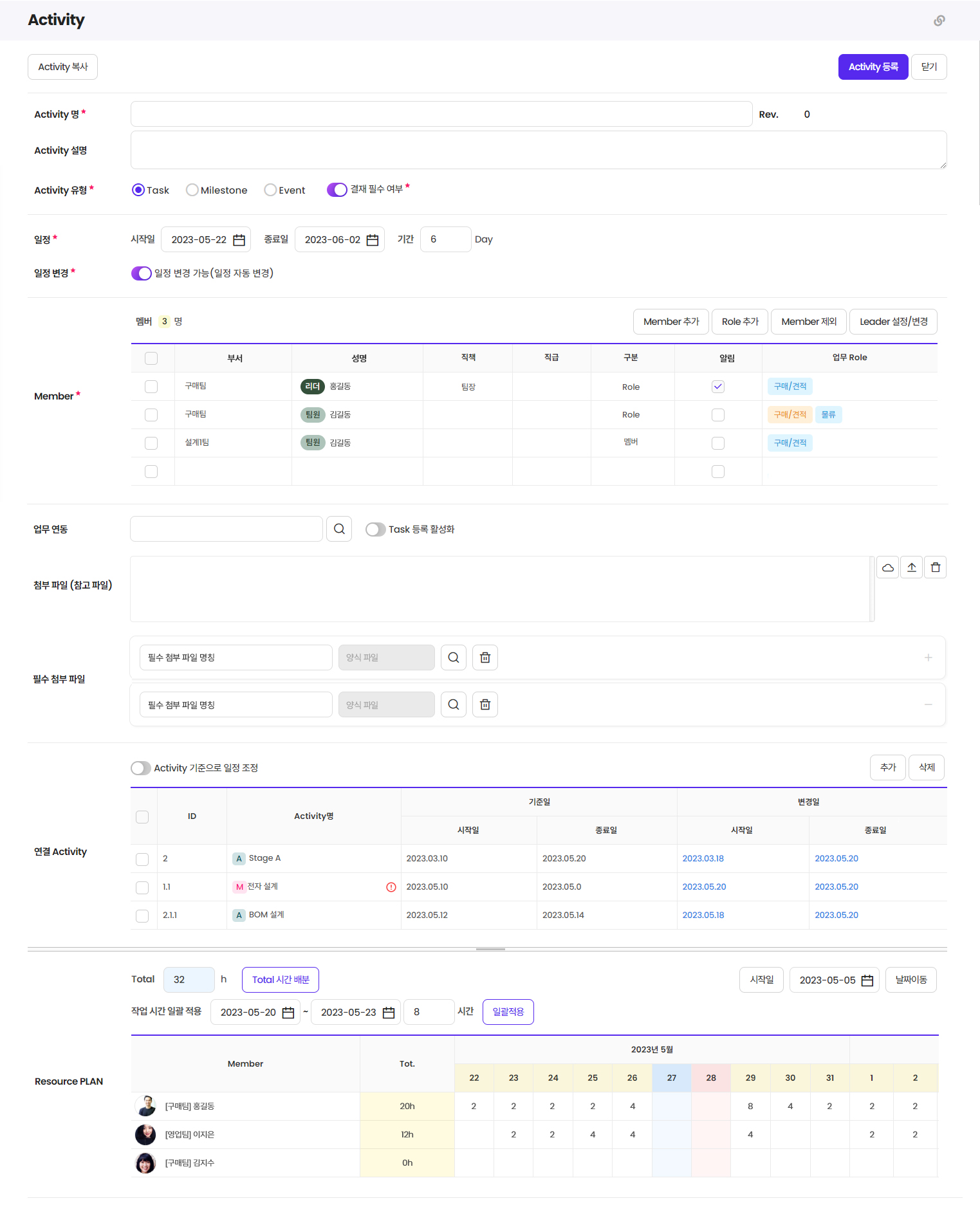 - 권한 그룹, Role 그룹, Activity Member 관리 가능