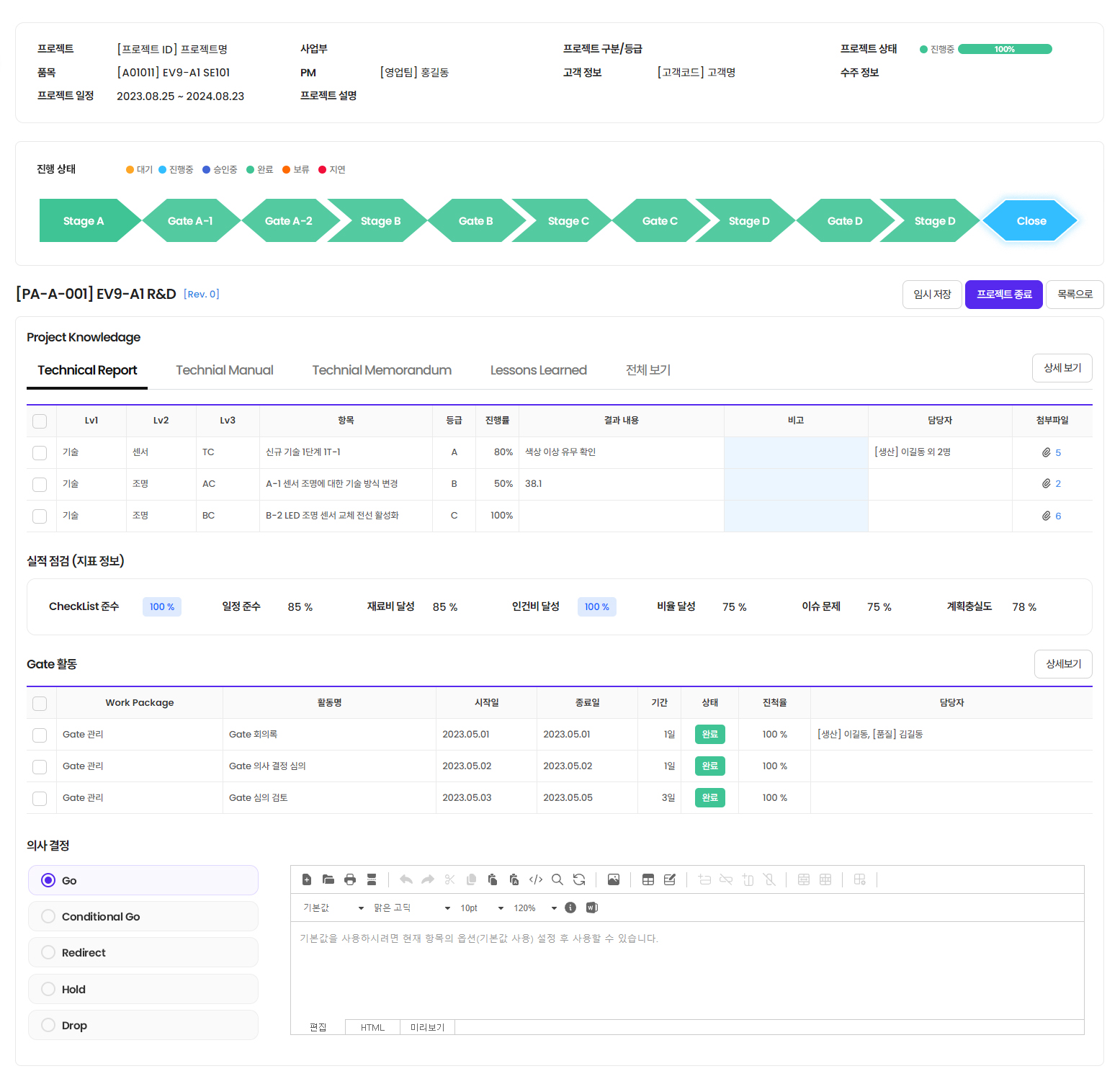 - 제품 수명 주기에 따라 각 단계별 일정 및 활동을 연계하여 관리