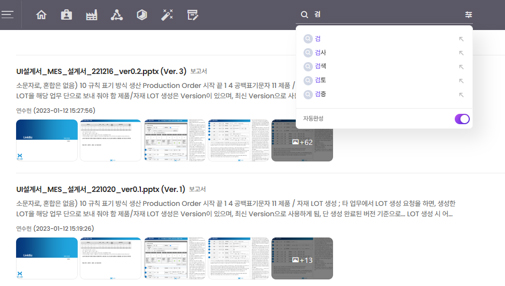 - 시스템 전체 문서 및 첨부 파일, 이미지 내용까지 검색 가능
