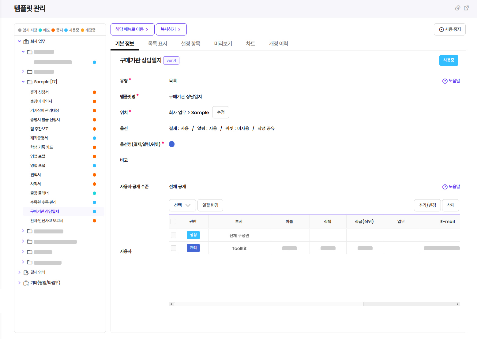 결재 및 배포 라인 설정
