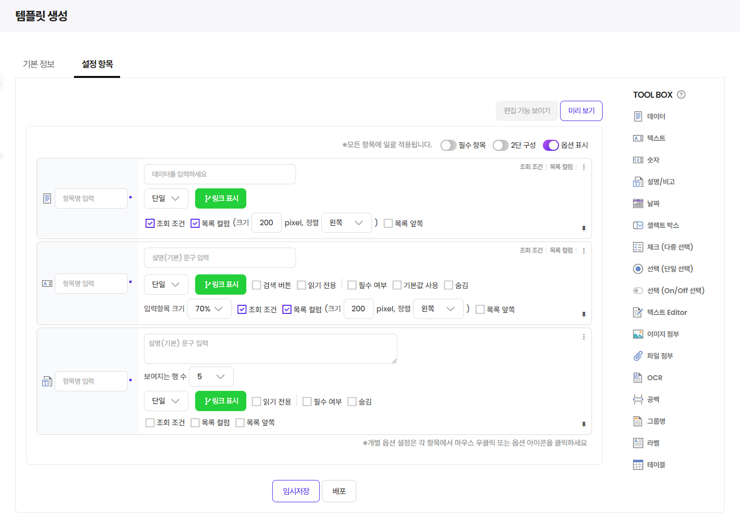 - Toolkit을 이용하여 신청서, 계획서 등 다양한 양식 제작 가능