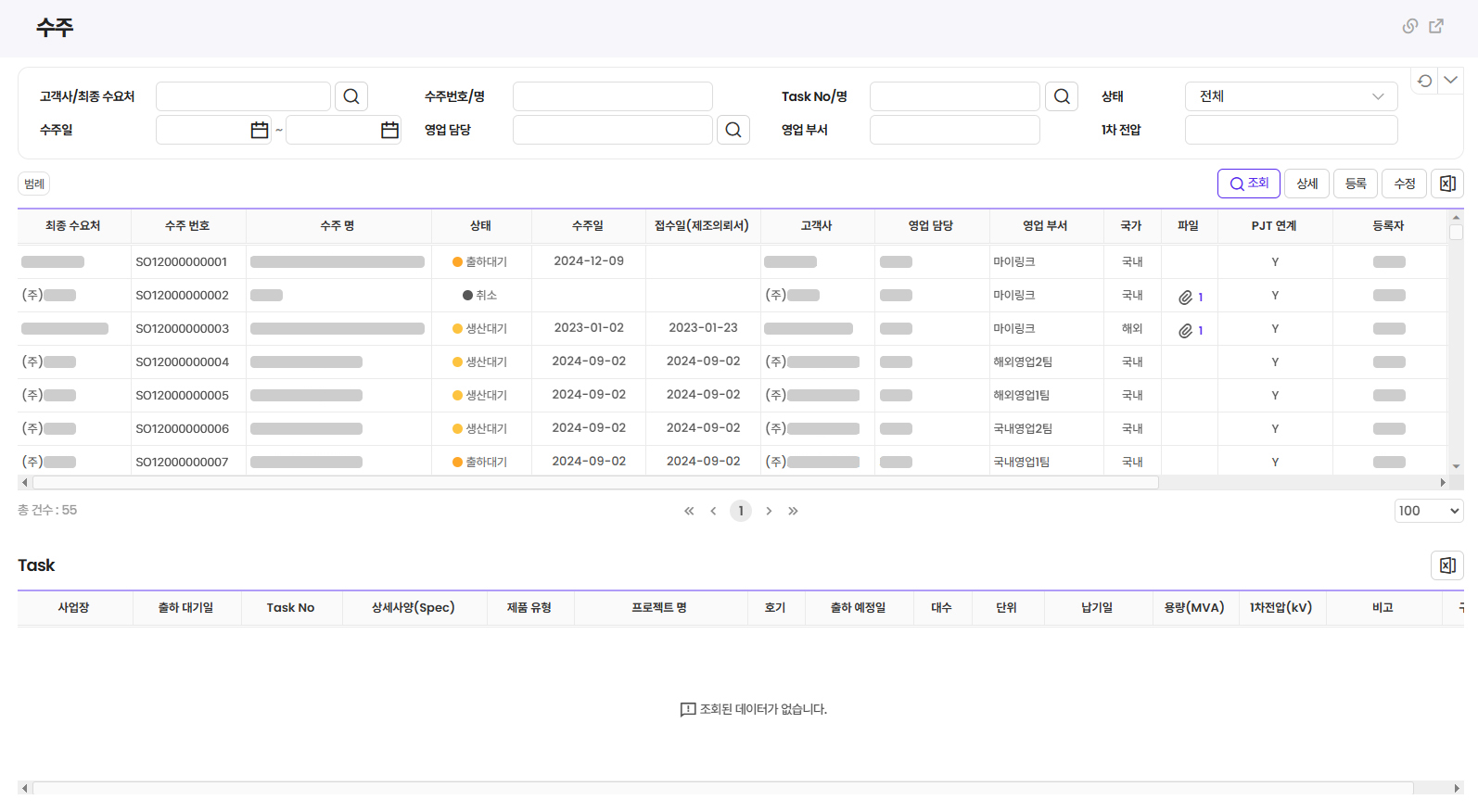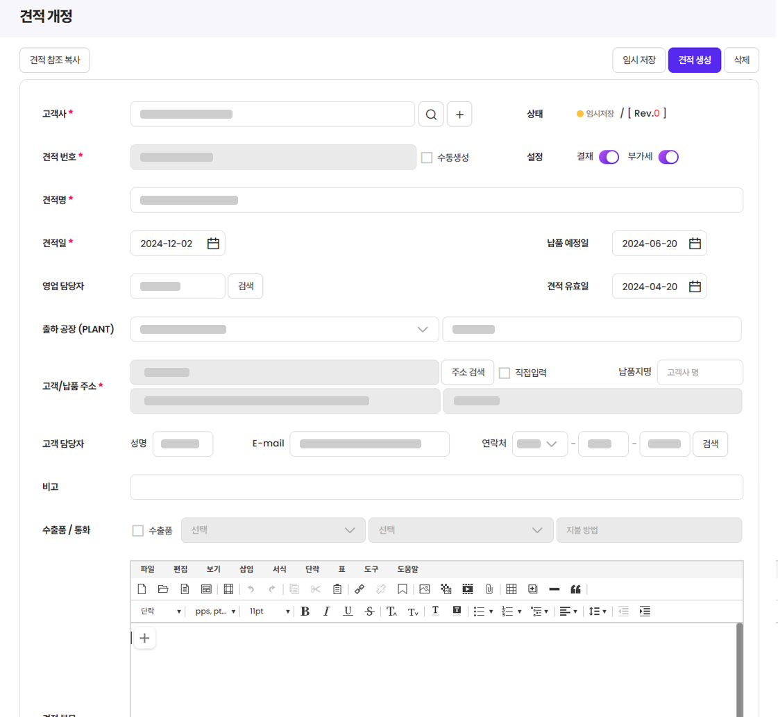 - 작성된 견적/제안서와 연계하여 수주 등록 가능
